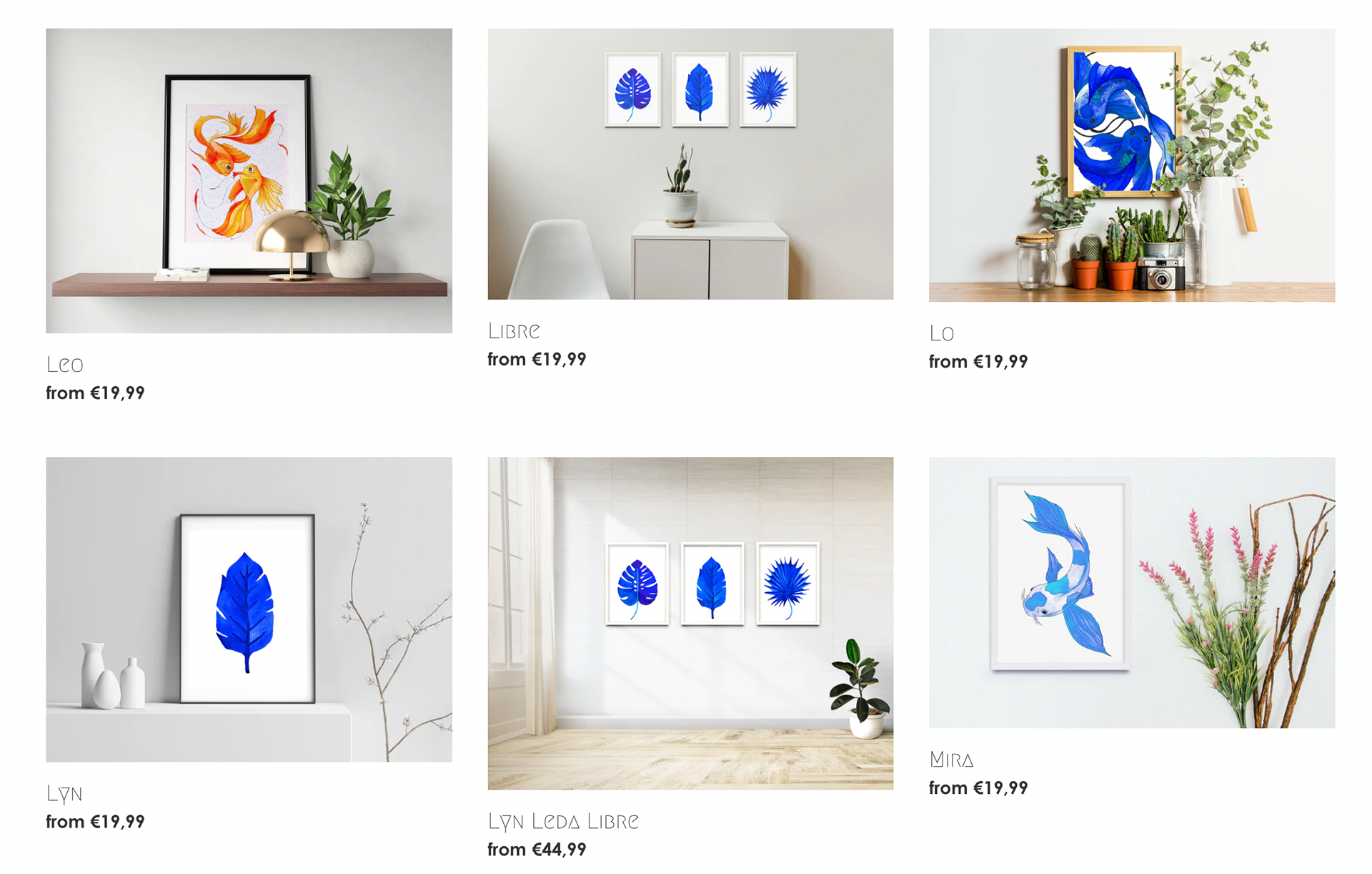 Luna Luna is my ongoing art practice and online shop, bringing together original illustrations, vibrant botanical and figurative prints, and community-focused art initiatives. I develop cohesive collections designed to live in interior spaces—from bold koi and leaf studies to more meditative compositions—then visualise how they sit in real homes through styled mockups and a clean e-commerce layout. Alongside selling prints, I also create identity work such as The Art Flow Initiative logo to support collaborative, wellbeing-centered art projects under the Luna Luna umbrella. The work blends bold colour, fluid forms, and nature-inspired motifs designed to live comfortably in contemporary interiors—from calm, minimal spaces to more eclectic homes. Through the online shop and curated collections, I explore how art can shift the atmosphere of a room, while using selected initiatives to support wellbeing, creativity, and community through visual storytelling.