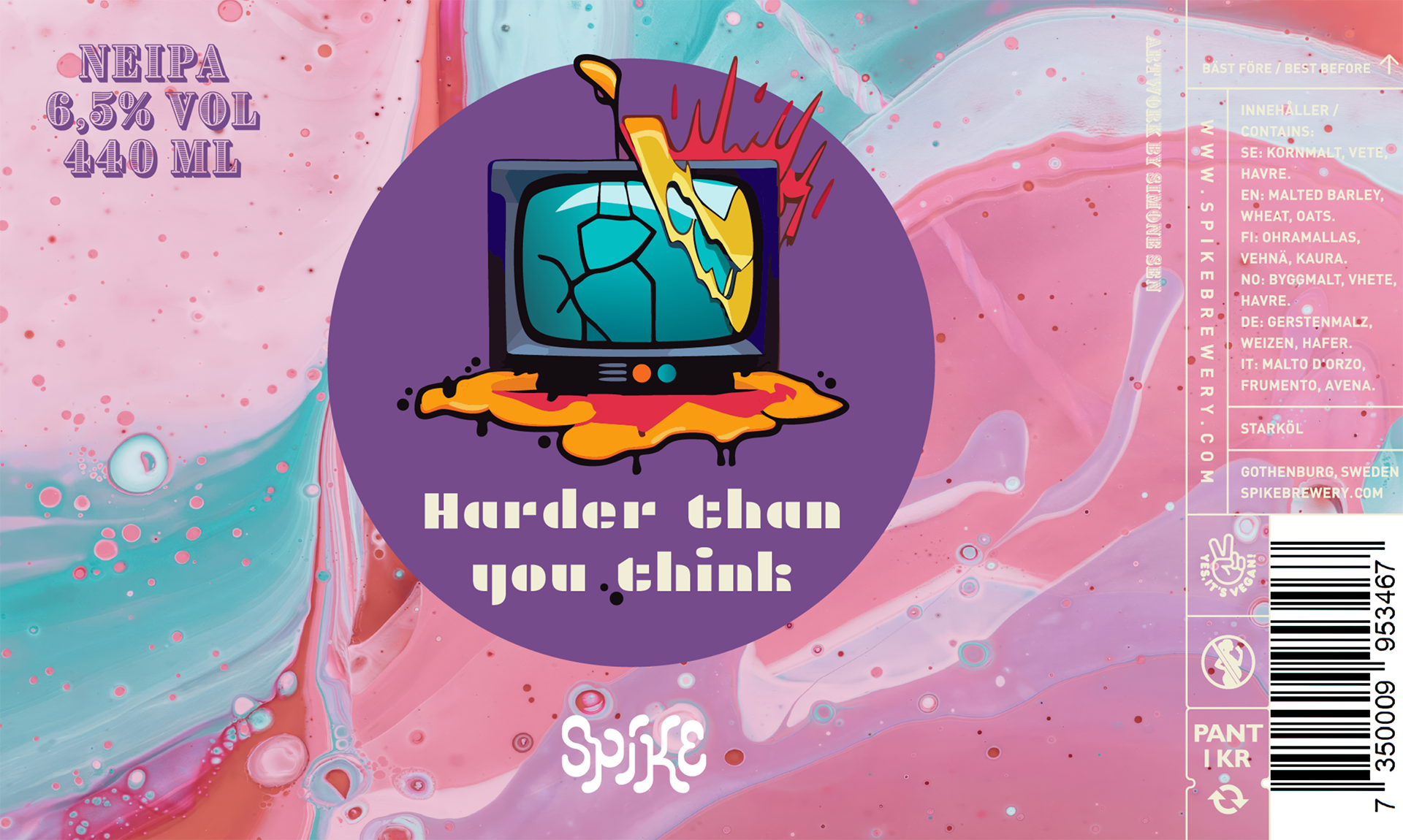 For Swedish craft beer brand Spike Brewery, I created the visual identity and can design for their New England IPA “Harder Than You Think.” The concept combines bold illustration, neon color blocking, and a playful, slightly nostalgic graphic style to stand out in crowded fridges and social feeds. Working closely with the brewery, I translated the beer’s juicy, punchy flavour profile into an equally expressive label. The launch has been a success across Sweden, with the design and overall look receiving strong reviews from both customers and retailers.